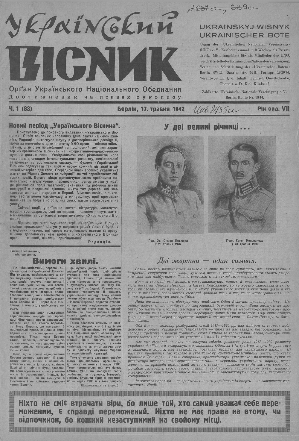 Index of /Ukrainskyi vistnyk/19420517_001/MASTER/